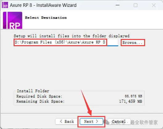 6、软件默认安装在C盘,可自定义更改软件安装位置,这里小编选择安装在D盘;点击【Next】
