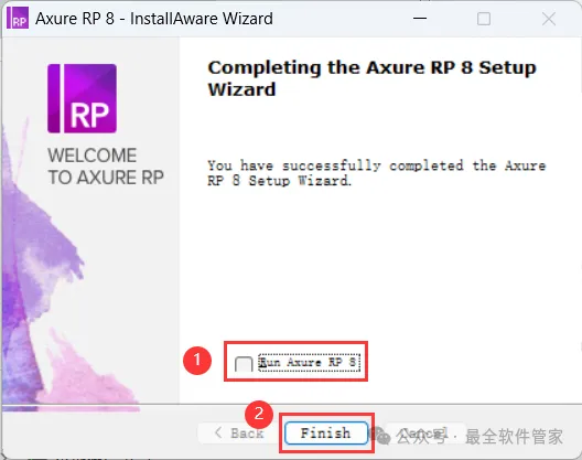 10、不勾选【Launch Axure RP 8】,再点击【Finish】