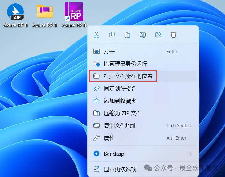 12、回到桌面,右键桌面上的【Axure RP 8软件图标】,点击【打开文件所在的位置】