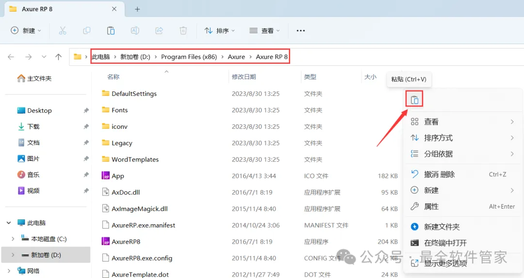 13、右键文件夹的空白处,点击【粘贴按钮】