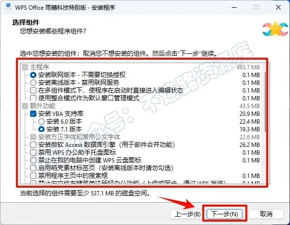 5.根据需要选择组件,点击“下一步”