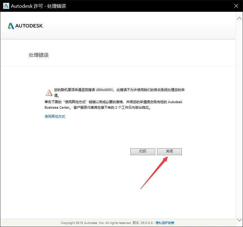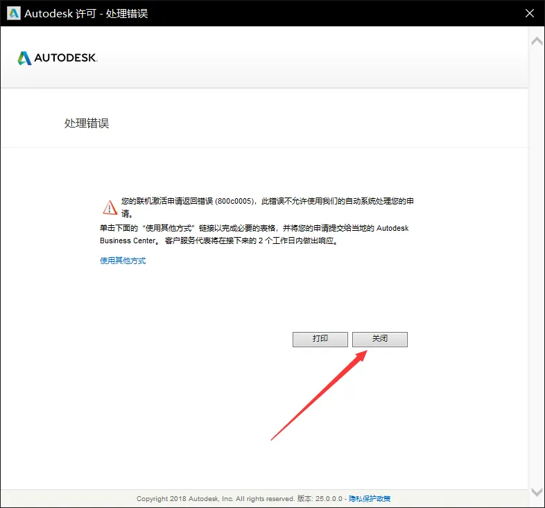 21、接着会弹出【处理错误】或【激活成功】窗口,无论哪种都代表软件已激活成功。