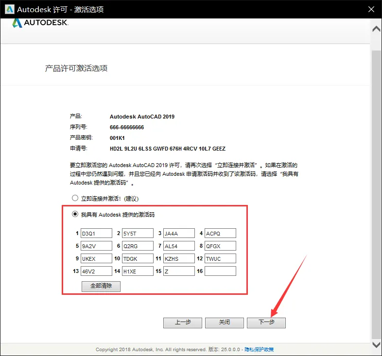 20把激活码粘贴在红框内,然后点击【下一步】