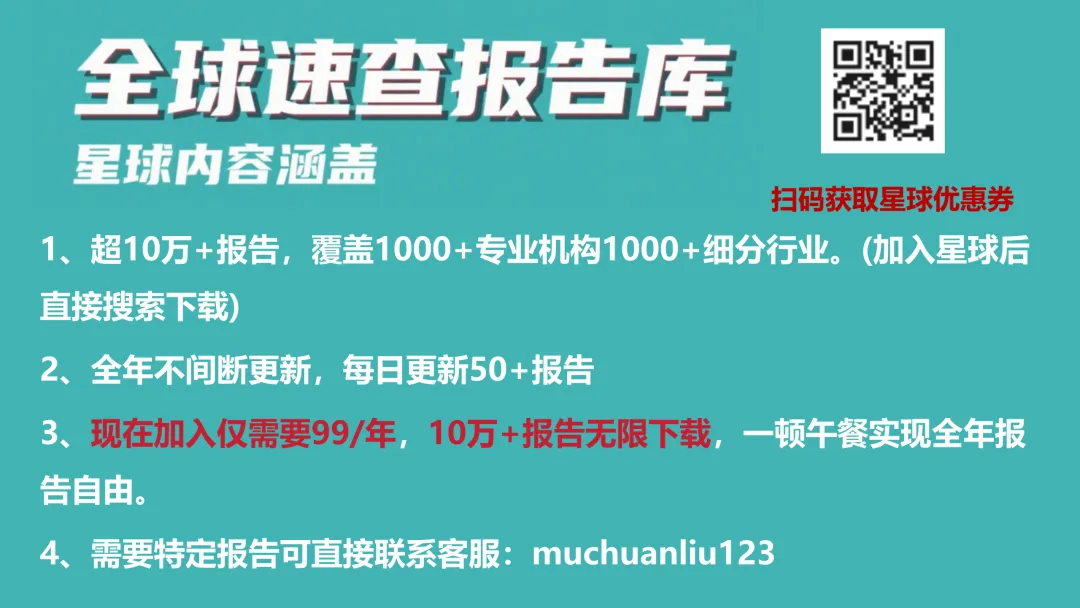 完整报告已上传至星球,扫描下方优惠券加入星球即可下载所有报告免责声明:我们尊重知识产权、数据隐私,只做内容的收集整理及分享,报告内容来源于网络,报告版权归原撰写发布机构所有,通过公开合法渠道获得,如涉及侵权,请及时联系我们删除,如对报告内容存疑,请与撰写、发布机构联系。