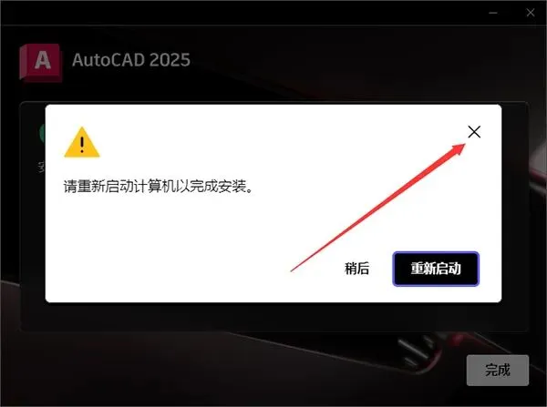 6、autocad2025安装成功,点击完成;