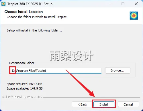 7.把安装路径前面的C改成D;点击【Install】(记住安装位置后面用)