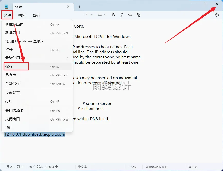 12.在最下方添加代码【127.0.0.1 download.tecplot.com】