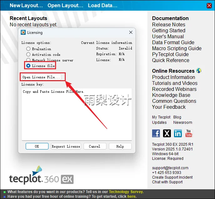 18.①选择【License file】,点击【Open License File】