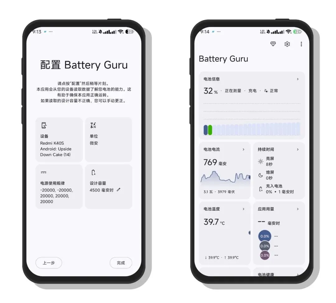 Battery Guru是一款专注于安卓手机电池健康与续航管理的专业工具,能实时监测电池健康度、实际容量、电压、温度与充电功率等核心数据,精准判断电池老化衰减趋势。支持记录充放电历史与充电轨迹,智能预估剩余充电及使用时间,搭配充电与高温双重预警,有效避免过充、过热等伤电行为。内置充电器/线材性能检测,帮你找出充电慢的原因;深度分析应用耗电与后台唤醒锁,精准定位耗电元凶;还可通过桌面小组件一键查看电池状态,科学优化充电习惯、延长电池寿命,适配多数安卓机型,上手简单高效。૮ ・ﻌ・ა
