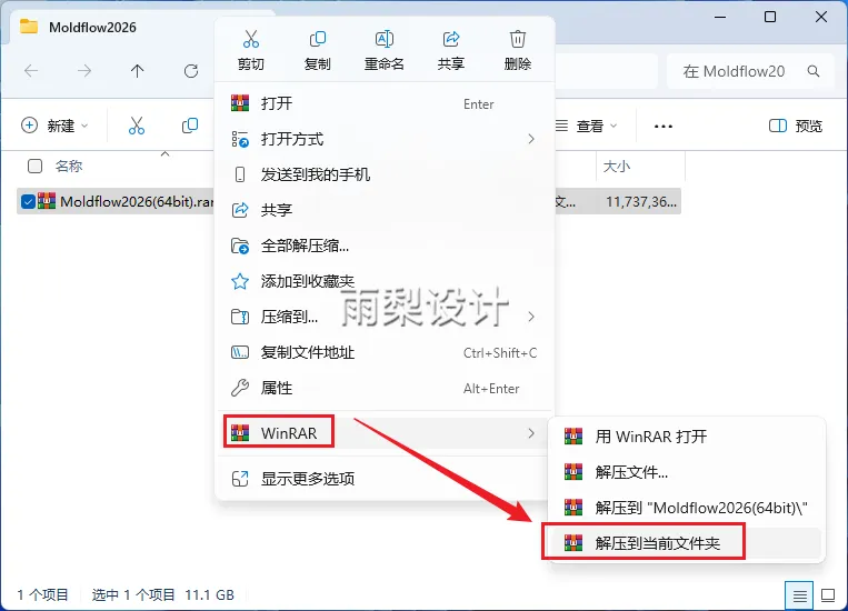 1.右键下载的压缩包,并【解压到当前文件夹】