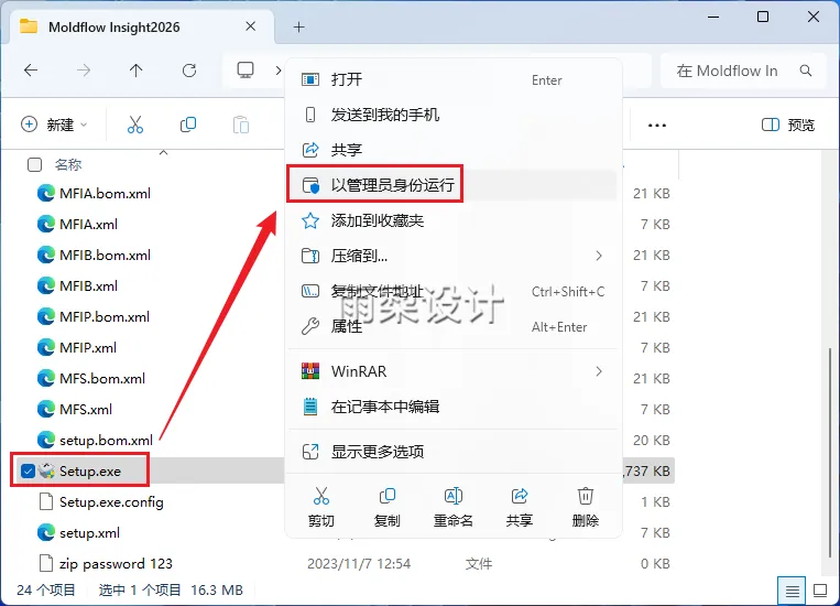 3.右键【Setup.exe】选择【以管理员身份运行】