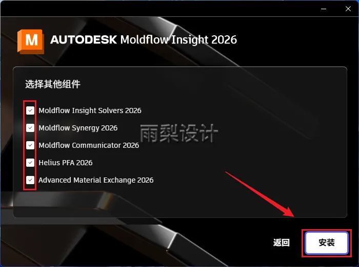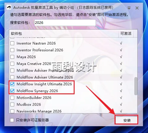 13.选择【Moldflow Insight Ultimate和MoldflowSynergy】,点击【安装】