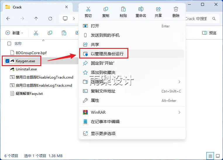 11.返回安装包;右键【Keygen】选择【解压到当前文件夹】