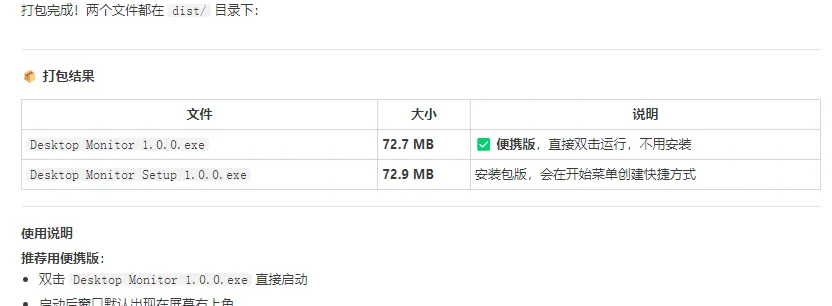 最终产物:一个 72.9 MB 的便携版 EXE,一个安装版 EXE。