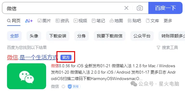 2.请谨记,一定要认准上图红框中的标志,不要看标题和描述内容。有很多连接为了吸引流量,会有误导性的字样,例如下图搜到的连接就不是官网了。