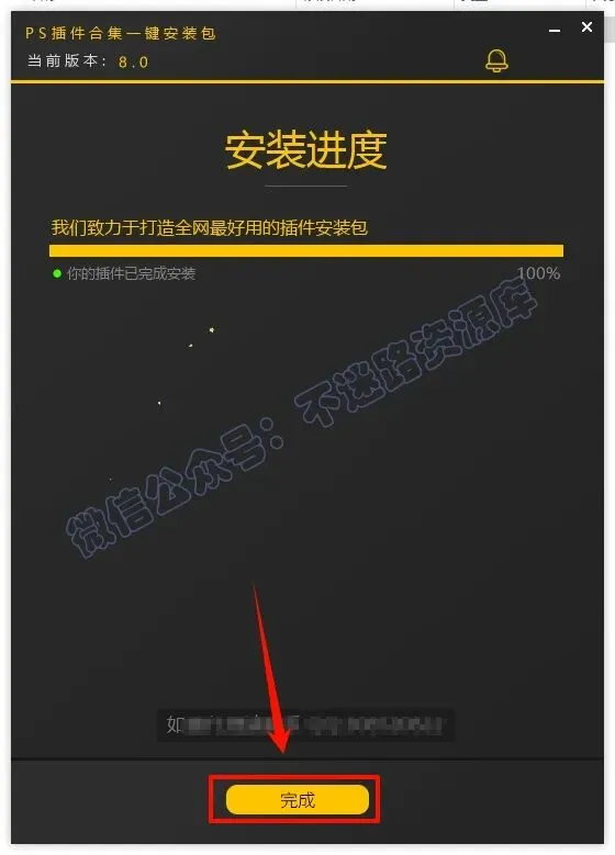 温馨提示::建议使用正式版PS(PS安装点这里) ,不要使用精简版、绿色版或Beta版,可能识别不到软件,当然,你也可以自己更改插件合集的安装位置,改到PS对应的插件目录就行