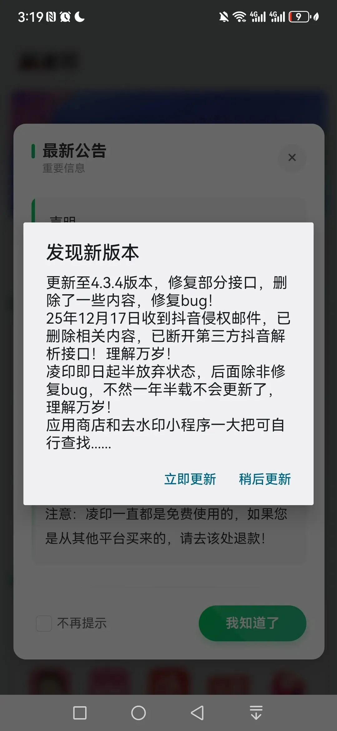 但是!今天包子哥给大家推荐一款安卓去水印下载神器——新凌印完全免费、没有广告,支持多个主流短视频平台无水印下载,最近还更新了抖音主页批量下载,一次能下50条视频