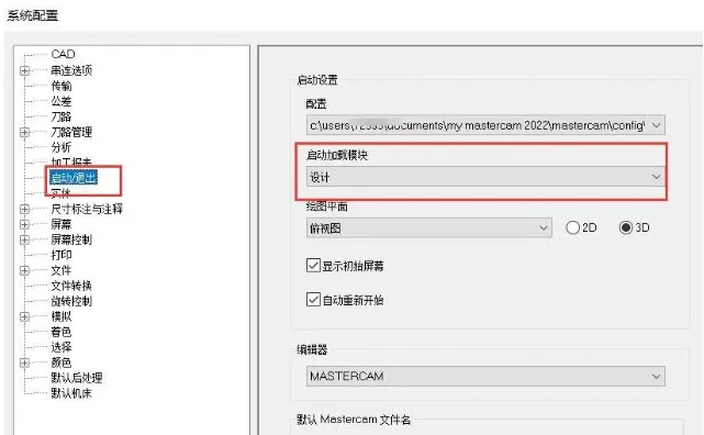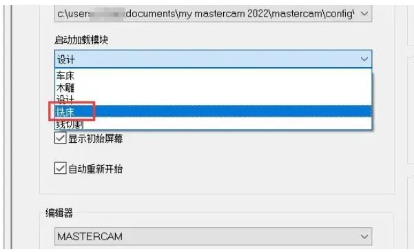 在masercam2022一般启动界面是进去设计,怎么才能直接进入编程界面呢