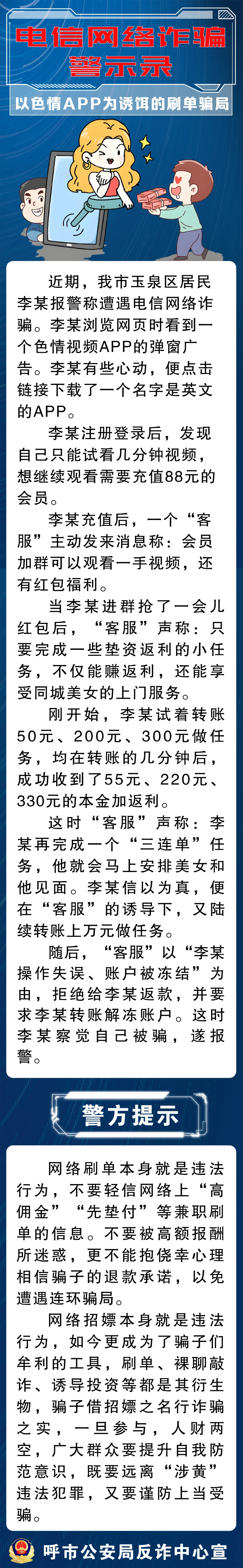 【反诈提醒】下载色情视频APP后,被拉群做任务!呼和浩特一居民惨遭刷单诈骗,被骗上万元