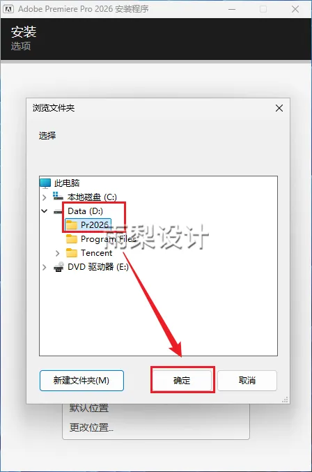 4.选择安装的位置(不建议安装到C盘);点击【确定】