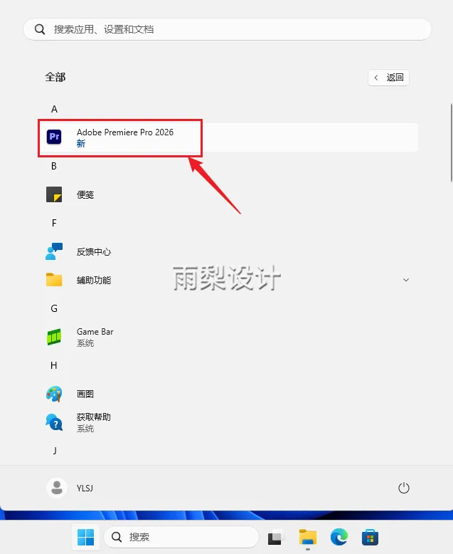 8.点击【开始】>【所有应用】>【Pr2026】图标单击打开