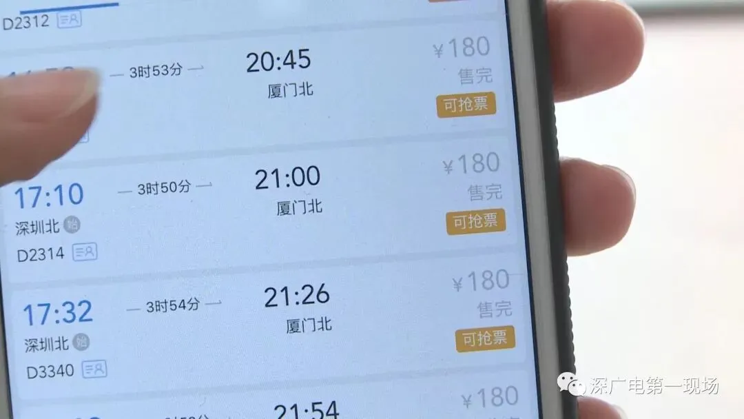 近日,贺女士在12306网站上购买国庆期间深圳去往厦门北的火车票时,发现基本上所有车次的票都售完了。