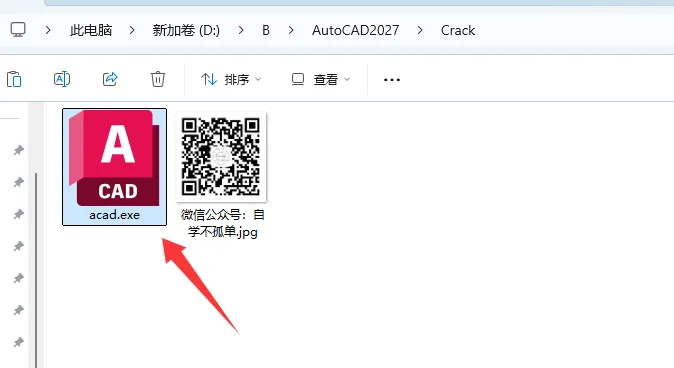 8、回到解压安装包复制Crack文件夹下acad.exe文件。