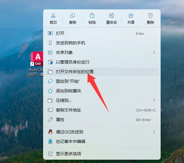 9、打开CAD软件安装路径,记不住安装路径可以直接右键桌面快捷方式,打开文件所在的位置。