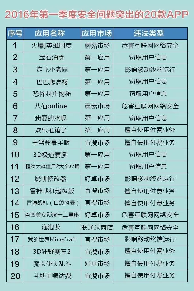 近日,广东警方向社会公开曝光20款违法APP,不仅窃取大家的个人信息,还能造成财产损失!当务之急,快来看下你的手机有没有下载这20款APP↓↓↓有的话,立马删除!