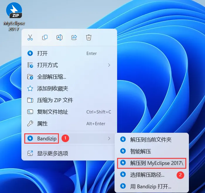 1、下载MyEclipse 2017软件安装包到电脑上,右键选择【解压到MyEclipse 2017\】