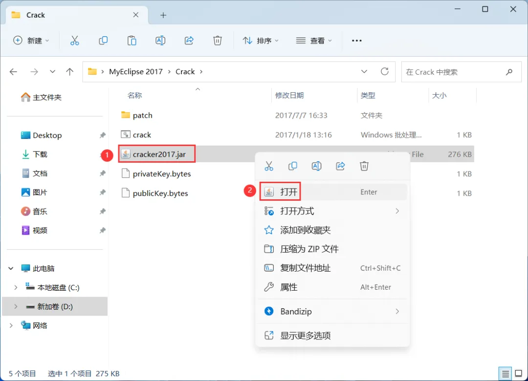 25、回到Crack文件夹,找到【cracker2017.jar】文件,右键【打开】它