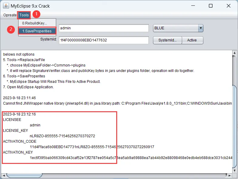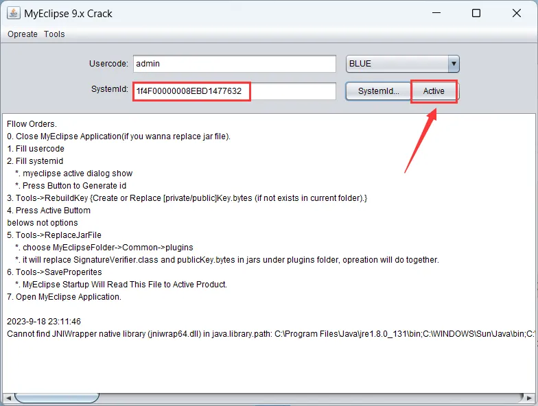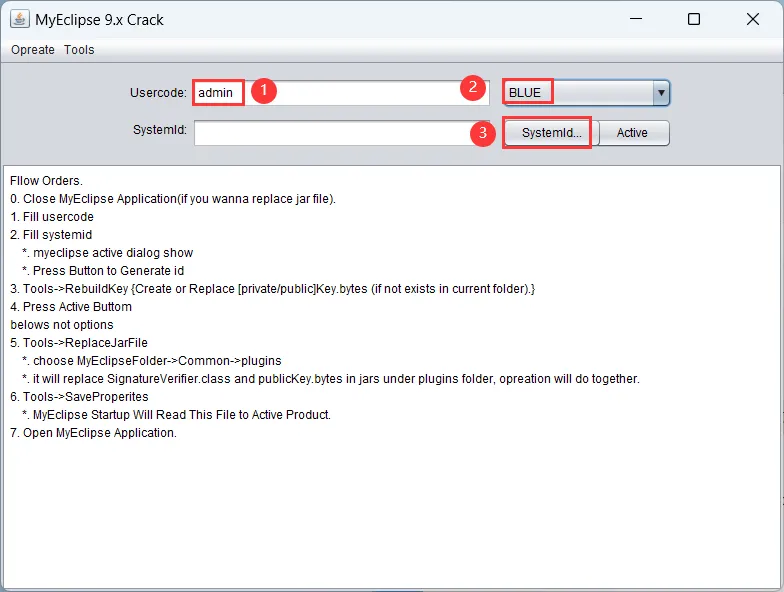 26、Usercode输入:admin,选择【BLUE】,再连续点击两次【Systemld】