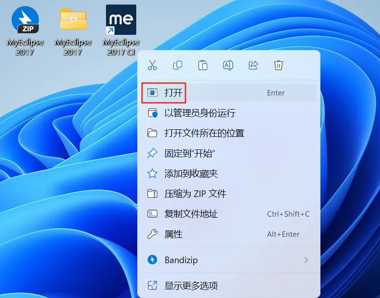 33、右键桌面上的【MyEclipse 2017 CI软件图标】,点击【打开】