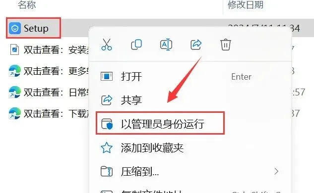 2.打开解压后的文件夹,鼠标右击【Setup】选择【以管理员身份运行】。