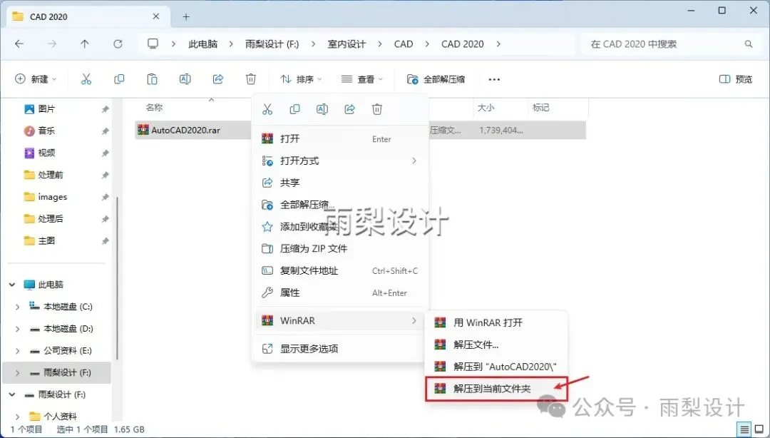 1.右键【下载的安装包】选择【解压当前文件夹】