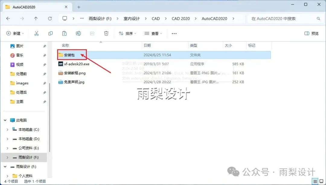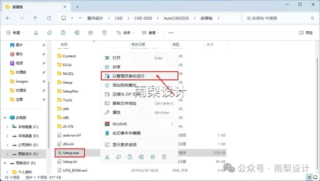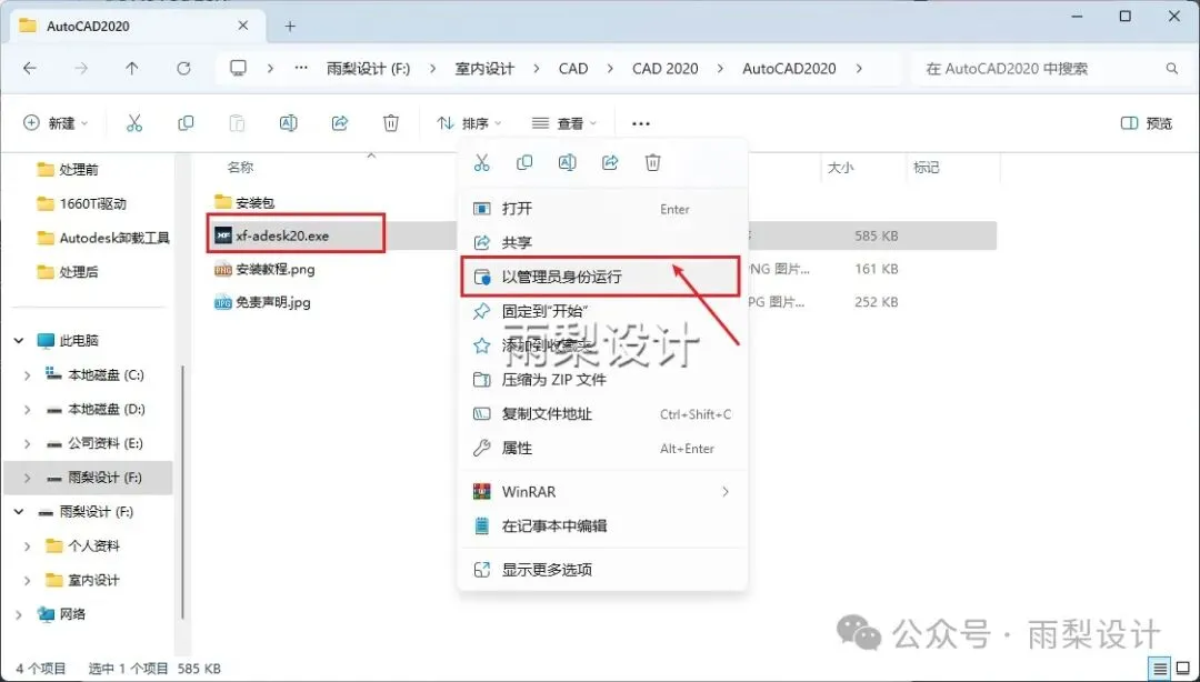 19.返回安装包;右键【xf-adsk20.exe】选择【以管理员身份运行】