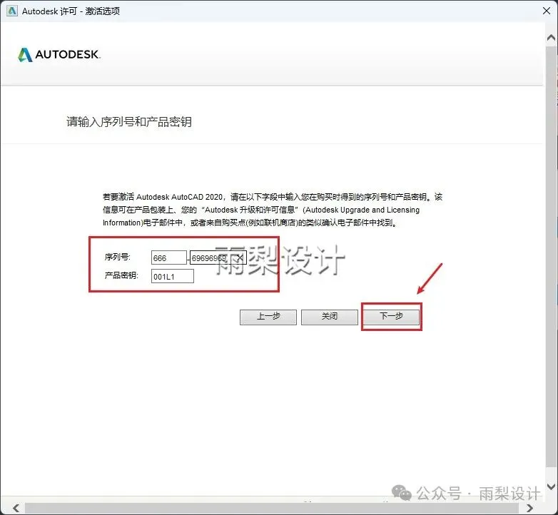 16.输入序列号【666-69696969】 密钥【001L1】;点击【下一步】
