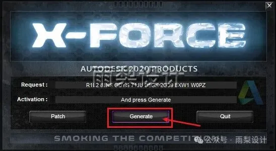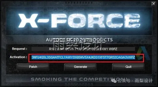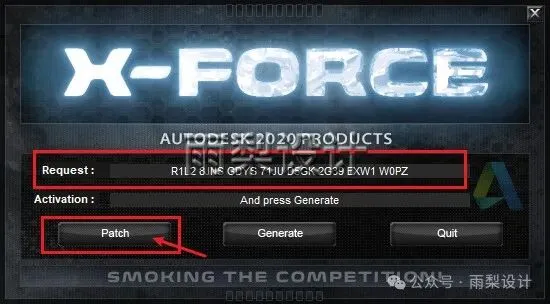 20.把第18步复制的申请码粘贴到【Request】;点击【Patch】