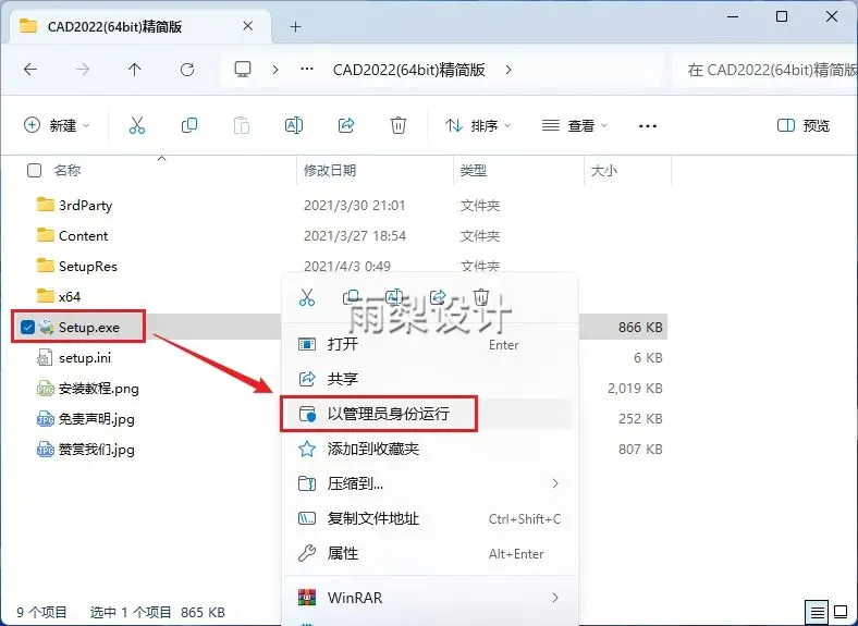 2.右键【Setup.exe】选择【以管理员身份运行】